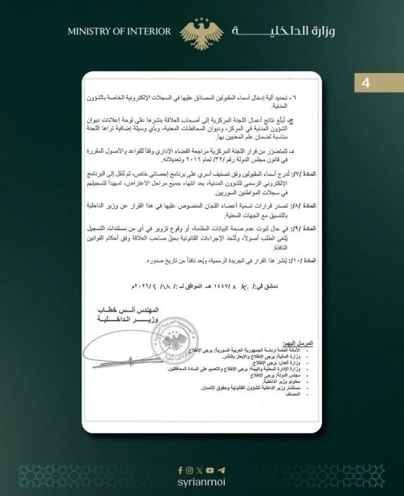 ئهمڕۆ ههینى 20ى شوبات وهزارهتى ناوخۆى سووریا كۆمهڵێك رێنوێنى بڵاوكردهوه، بۆ پێدانى رهگهزنامهى سووریا بۆ هاووڵاتیانى كورد. ئهمهیش بهگوێرهى مهرسوومى ژماره 13ى تایبهت به مافهكانى كورد كه سهرهتاى ئهمساڵ لهلایهن ئهحمهد شهرع سهرۆكى سووریا واژوو كرا.