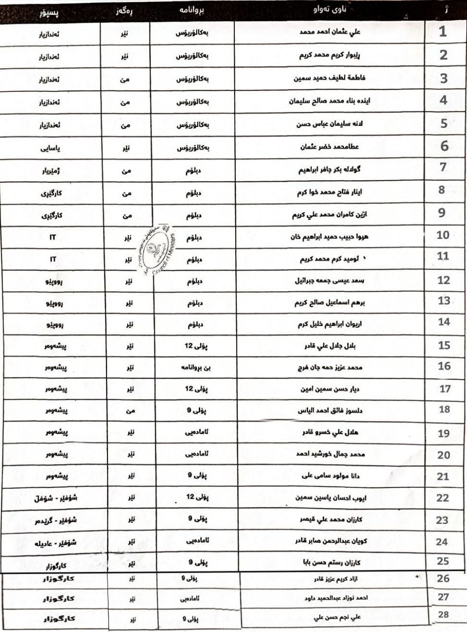 لەلایەن حكوومەتی هەرێمی كوردستانەوە دەیان كەسی تر دامەزرێنران و ناوەكانیان بڵاو دەكرێتەوە.