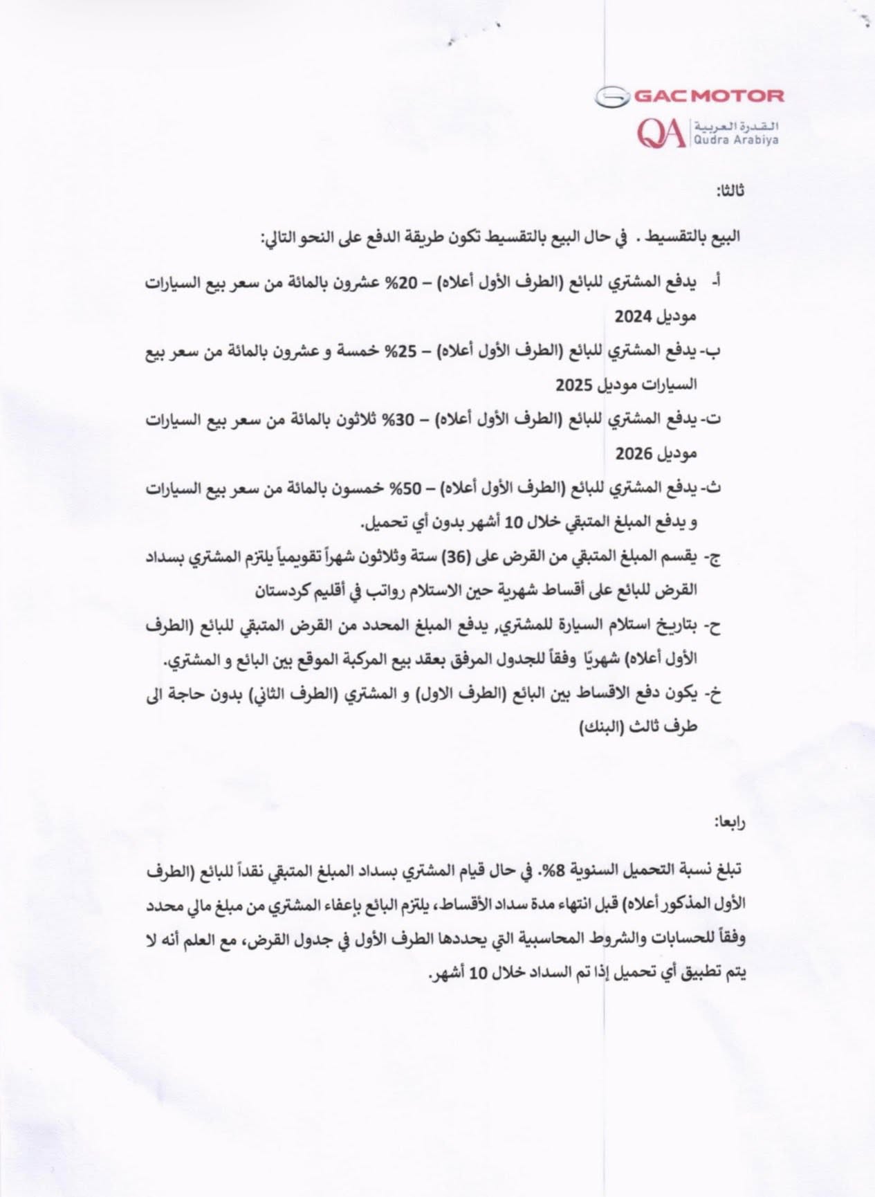 • مۆدێل 2026: پێشەكی 30%ـی نرخەكەی دەدرێت.