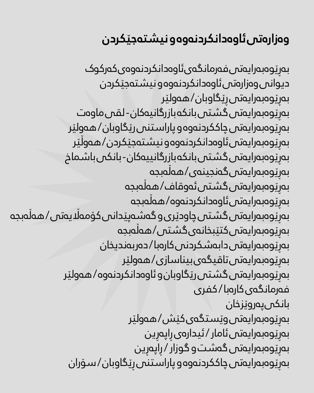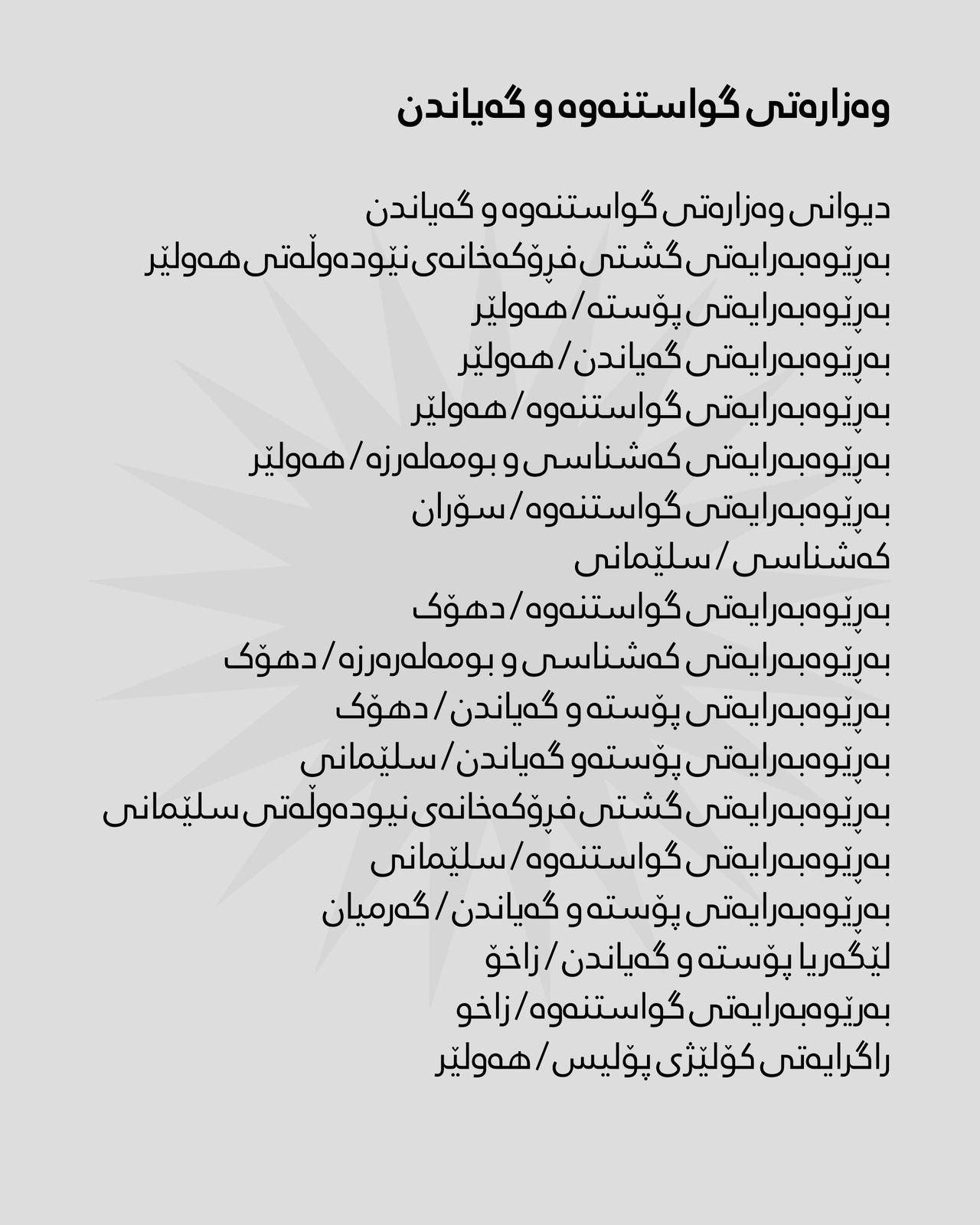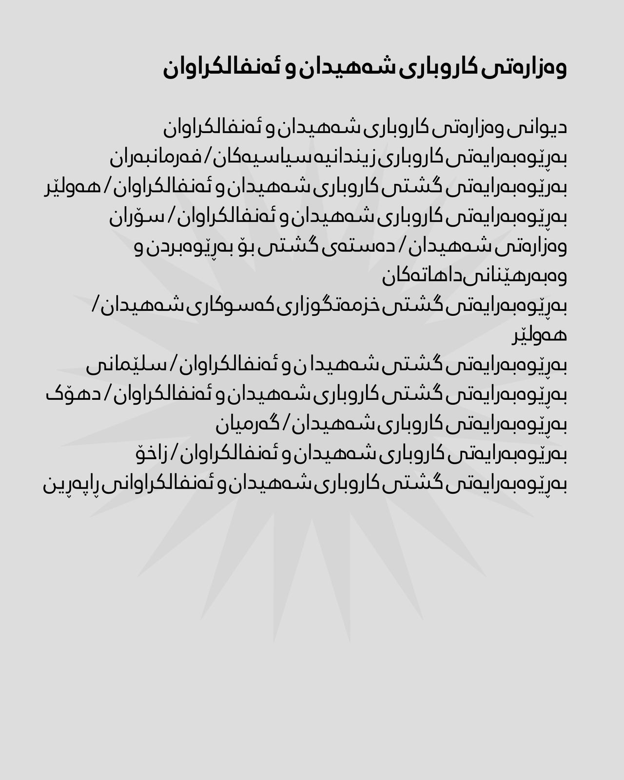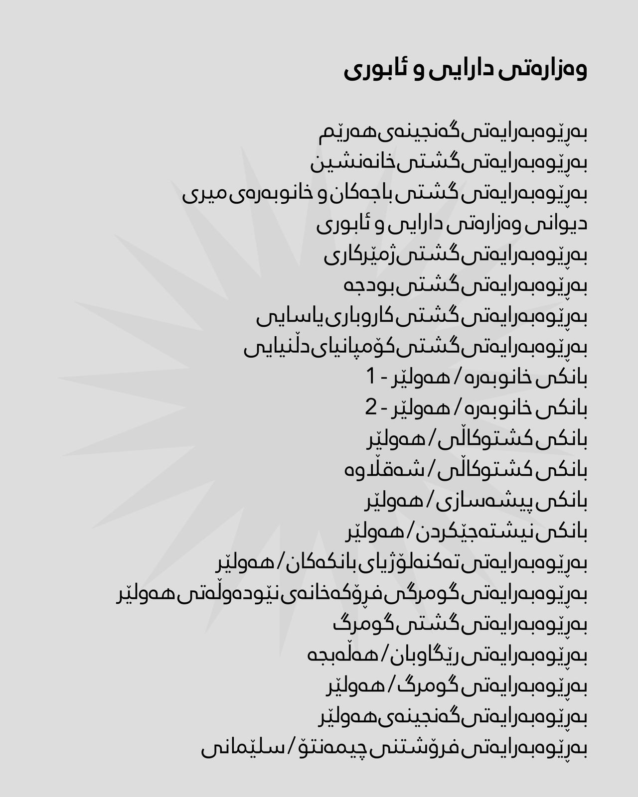 بەپێی ڕاگەیەنراوەکە، ئەو مووچەخۆرانەی کە لەسەر "هەژماری من" تۆمارکراون و سەر بەو وەزارەت و فەرمانگانەن کە ناویان لە خشتەکەدا هاتووە، دەتوانن لە سبەینێوە مووچەکانیان لە ڕێگەی ئامێرەکانی ڕاکێشانی پارەوە (ATM) وەربگرن.