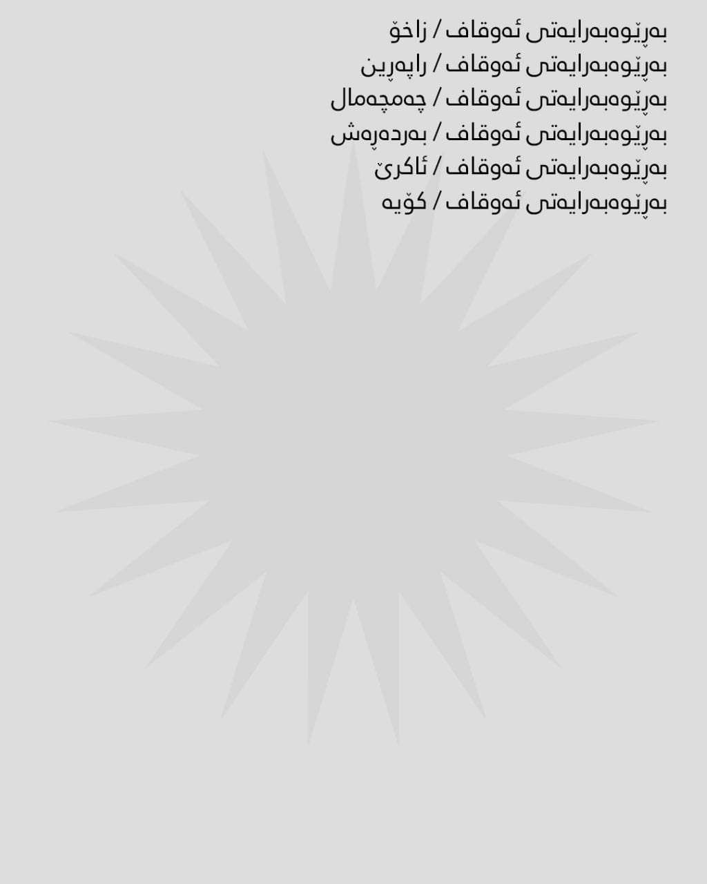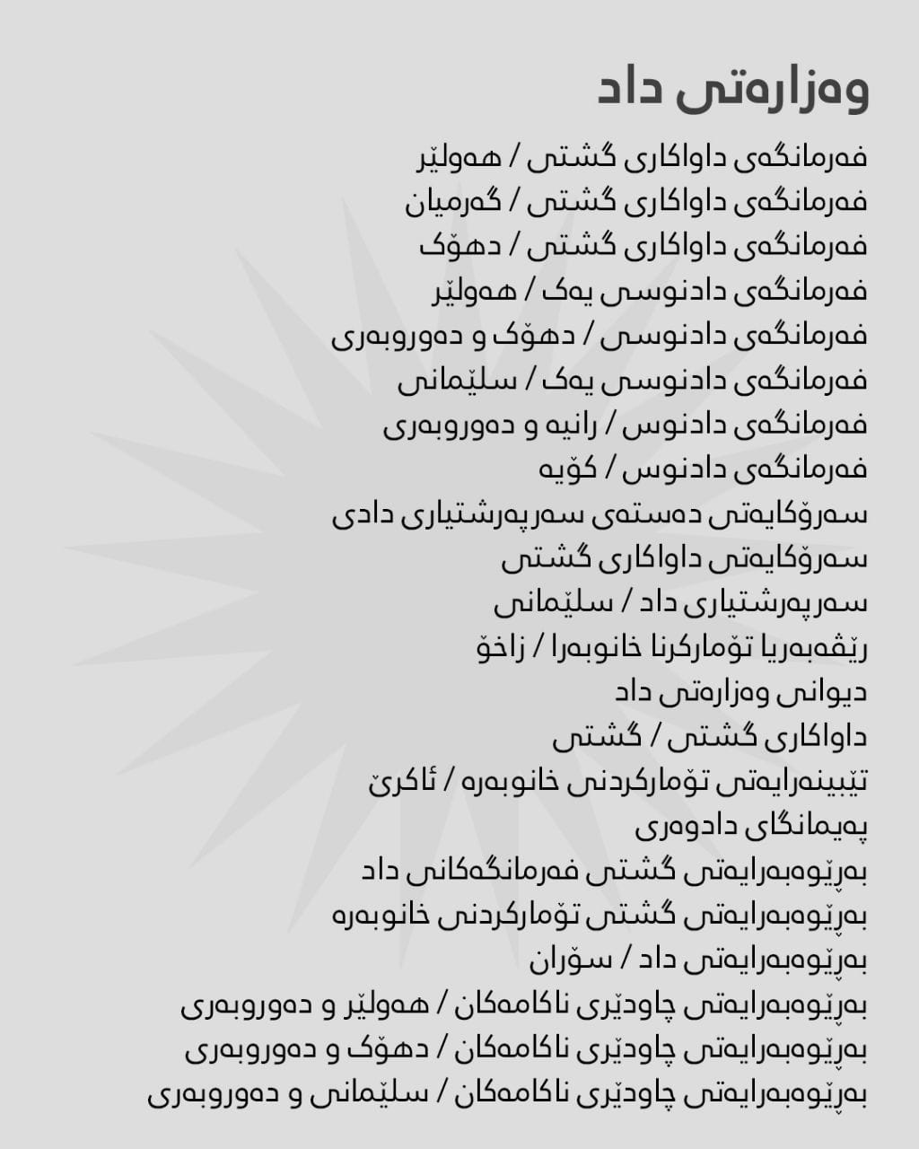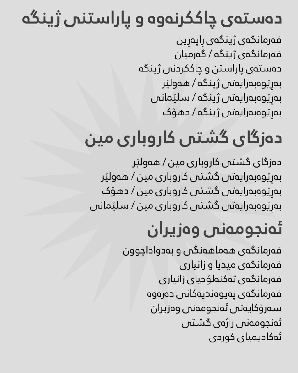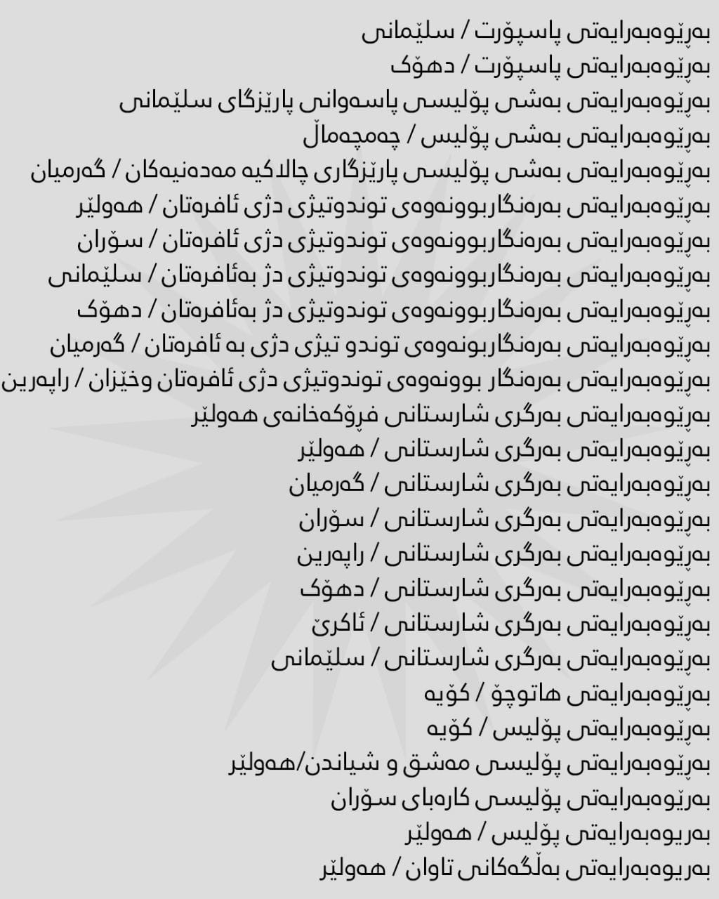لیستی ناوی فەرمانگە و بەڕێوەبەرایەتی و دەستە و وەزارەتەكان هاوپێچی ئەم هەواڵەیە..