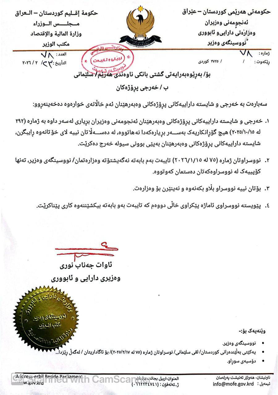 لەسەر داوای بەڵێندەران، وەزیری دارایی هەرێمی كوردستان فەرمانی بە خەرجكردنی پارەی پڕۆژەكان دا و ئەوەیش بەڵێندەران دڵخۆش دەكات.