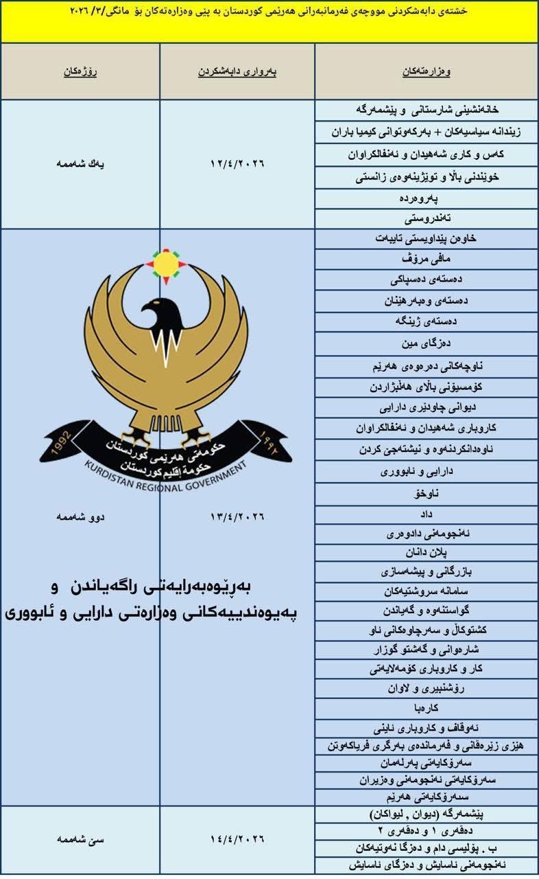وەزارەتی دارایی و ئابووری حكوومەتی هەرێمی كوردستان رای گەیاند، وەزارەتی دارایی عێراق بەشێك لە تەمویلی مووچەی مانگی ئاداری نەناردووە.