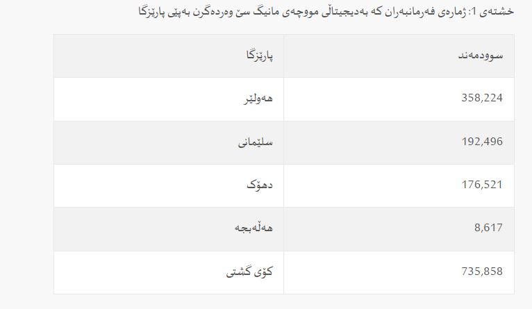 وەزارەتی دارایی و ئابووریی حكوومەتی هەرێمی كوردستان ڕای دەگەیەنێت، كە نزیكەی 736 هەزار مووچەخۆری مەدەنی، خانەنشینی، پێشمەرگە، ئاسایش و ماڵباتی شەهیدان مووچەی مانگی سێ بەشێوەی دیجیتاڵی لە ڕێگەی پڕۆژەی هەژماری من وەردەگرن.