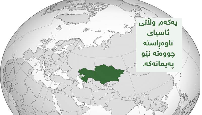 پێویسته بگوترێ كازاخستان له دوای ههڵوهشانهوهی بلۆكی رۆژههڵات و یهكێتیی سۆڤییهت، وهك كۆمارێكی سهربهخۆ درێژهی به ژیانی سیاسیی خۆی داوه و لهمدواییانهدا زیاتر كهوتووهته ژێر كاریگهریی ئهمهریكا. وڵاتهكه له باكور لهگهڵ رووسیا. له رۆژههڵات لهگهڵ قێرغیزستان له باشووری رۆژههڵات لهگهڵ ئۆزباكستان و له باشووریش لهگهڵ توركمانستان هاوسنووره و به نۆیهم وڵاتی گهورهی دنیا لهرووی رووبهر ههژمار دهكرێت.