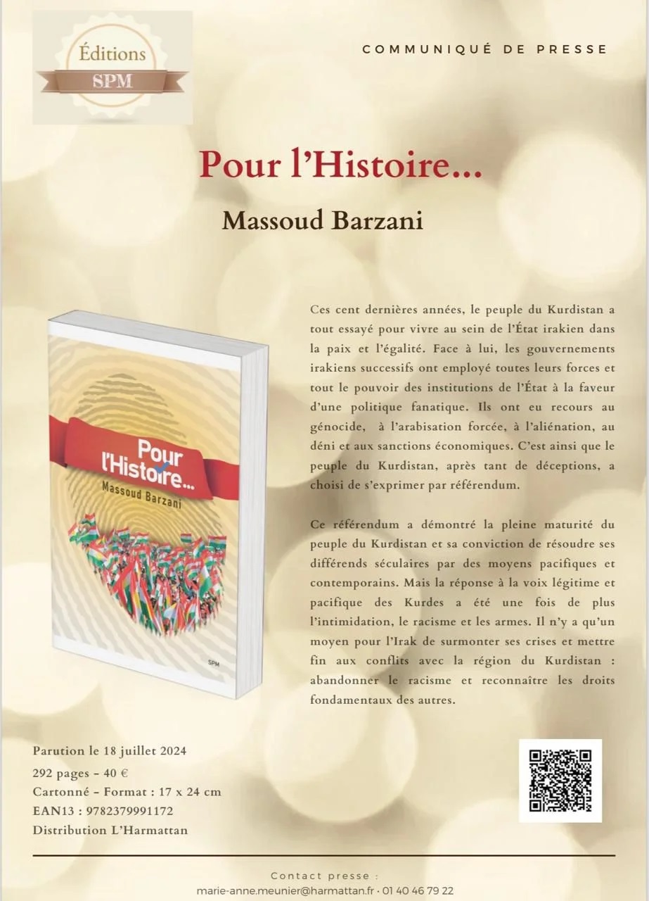 كتێبی "بۆ مێژوو" لەلایەن سەرۆك مەسعوود بارزانی نووسراوە و بە چەند زمانێك چاپ و بڵاو كراوەتەوە، كۆتا چاپیشی بەزمانی فڕەنسی بڵاو كرایەوە.