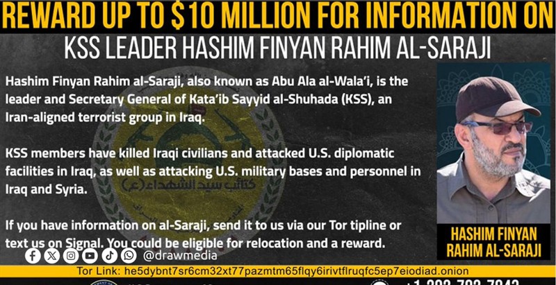 ئەمڕۆ هەینی 24ی نیسانی 2026، وەزارەتی دەرەوەی ئەمەریکا لە ڕێگەی پرۆگرامی "پاداشت لەپێناو دادپەروەری"ی سەر بە دەزگای ئاسایشی دیپلۆماسی، پاداشتێکی گەورەی بۆ هەر زانیارییەک لەسەر سەرکردەیەکی میلیشیاکانی عێراق ڕاگەیاند.