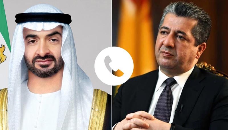 ئەمڕۆ سێشەم 10ی ئاداری 2026، لە پێوەندییەکی تەلەفۆنیدا، مەسروور بارزانی سەرۆکی حكوومەتی هەرێمی کوردستان و شێخ محەمەد بن زاید ئال نەهیان سەرۆکی دەوڵەتی ئیمارات، باسیان لە پێشهاتەکانی ناوچەکە، بەتایبەتی لە هەرێمی کوردستان، عێراق و ئیمارات کرد و گرنگیی زیاتر پتەوکردنی پێوەندیی دوولایەنە و هاوئاهەنگیی نێوان هەرێمی کوردستان و ئیماراتیان دووپات کردەوە.