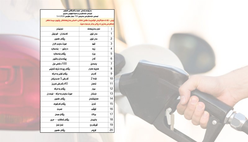باسی لەوەش كرد، بڕیارمان داوە لە بەرەبەیاندا ناوی ئەو بەنزینخانانە بڵاو بكەینەوە كە بەنزینی 750 دیناری دابەش دەكەن، ئەوەیش وا دەكات ئەو شوێنانە هێندە جەنجاڵی لەسەر نەبێت و شوفێران لە شەودا ئۆتۆمبێلەكانیان لەو شوێنە جێنەهێڵن.