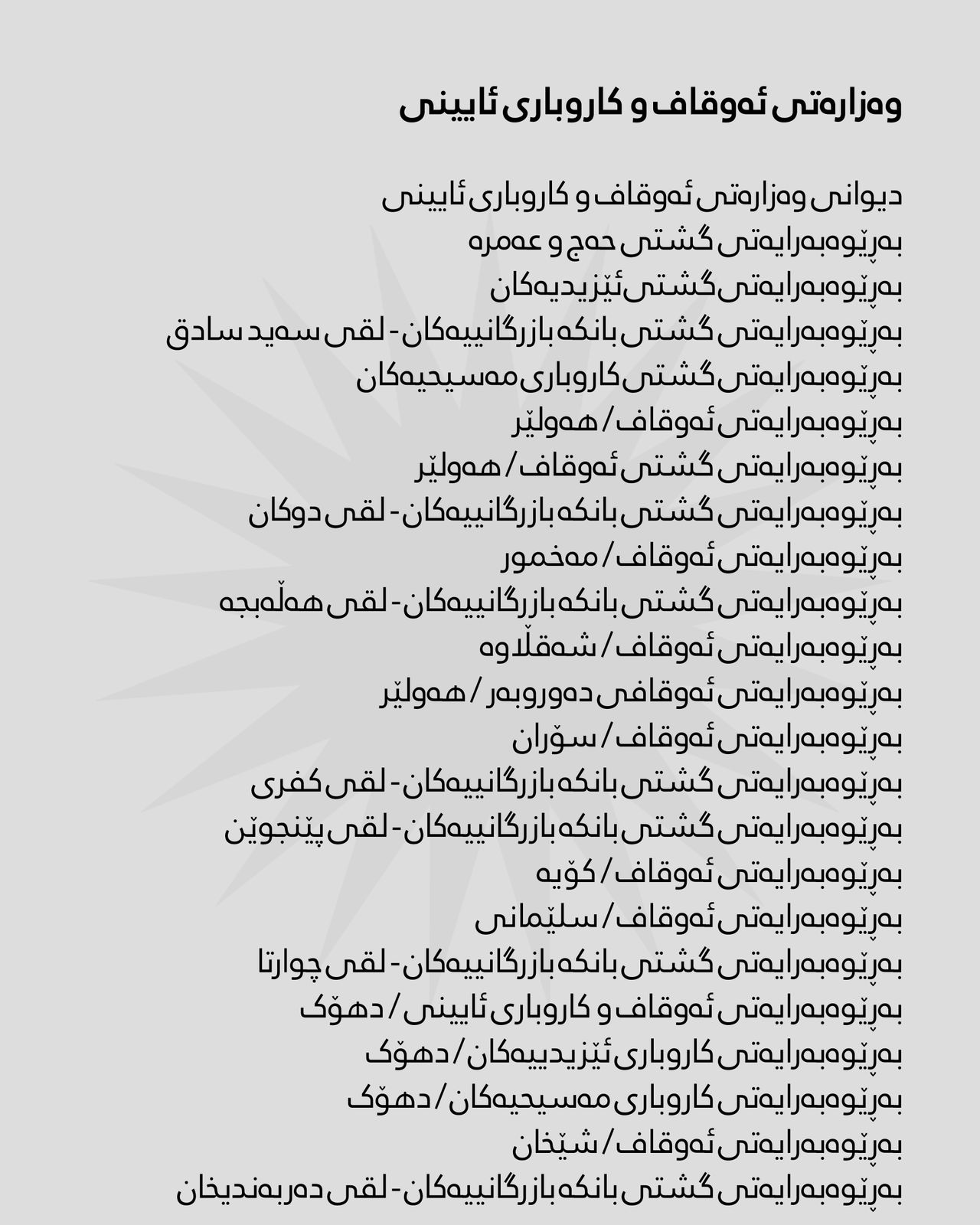 بەپێی ڕاگەیەنراوەکە، ئەو مووچەخۆرانەی کە لەسەر "هەژماری من" تۆمارکراون و سەر بەو وەزارەت و فەرمانگانەن کە ناویان لە خشتەکەدا هاتووە، دەتوانن لە سبەینێوە مووچەکانیان لە ڕێگەی ئامێرەکانی ڕاکێشانی پارەوە (ATM) وەربگرن.