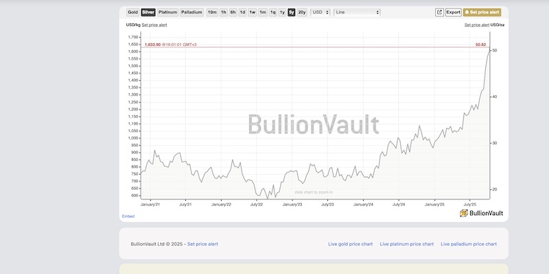 له مانگی تشرینی یهكهمی ساڵی 2022 واته سێ ساڵ لهمهوبهر، نرخی ههر كیلۆگرامێك زیو 600 دۆلار بوو، بهڵام دهبینرێت لهو كاتهوه سەرووی ههزار دۆلاری هاتووهته سهر.