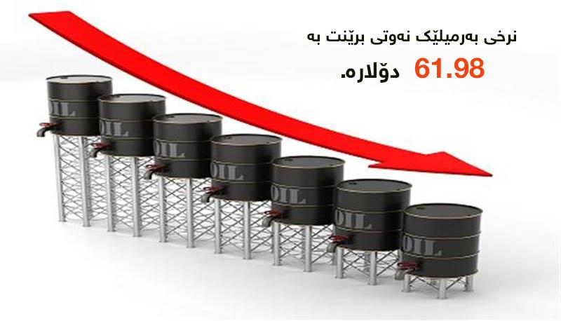 نرخی ههر بهرمیلێك له نهوتی برێنت كه له ناوهڕاستی ههفتهكه گهیشتبووه نزیكهی 65 دۆلار به 61 دۆلار و 98 سهنت داخرا، كه نزمترین نرخی نهوته لهوهتهی 13ی مانگهوه تۆمار كرابێت.
