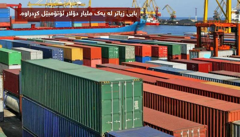 ئۆتۆمبێل و ماتۆڕسكیل بایی یهك ملیار دۆلار، ئاسن و پۆڵا 750 ملیۆن دۆلار و پلاستیك 680 ملیۆن دۆلار بووه.