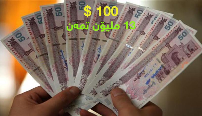 بههای تمهن زیاتر دابهزی و ئهمڕۆ ههر 100 دۆلار به زیاتر له 13 ملیۆن تمهن ئالوگۆڕ دهكرێت كه نزمترین نرخی تمهنه له مێژوودا تۆمار كرابێت. له ماوهی مانگێكدا ئهم دراوه زیاتر له 20% بێبهها بووه.