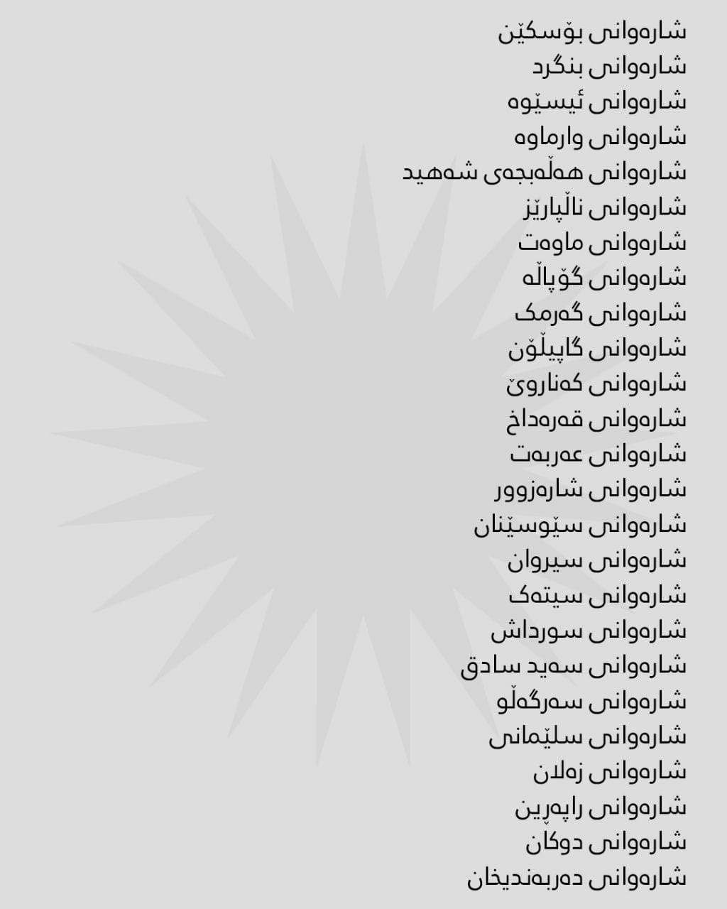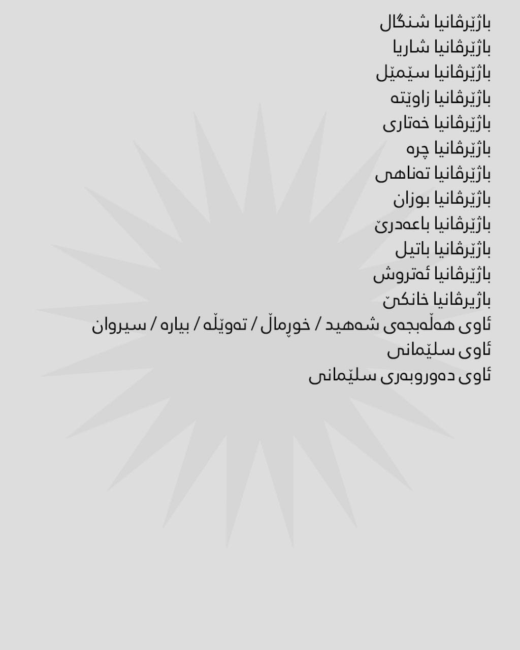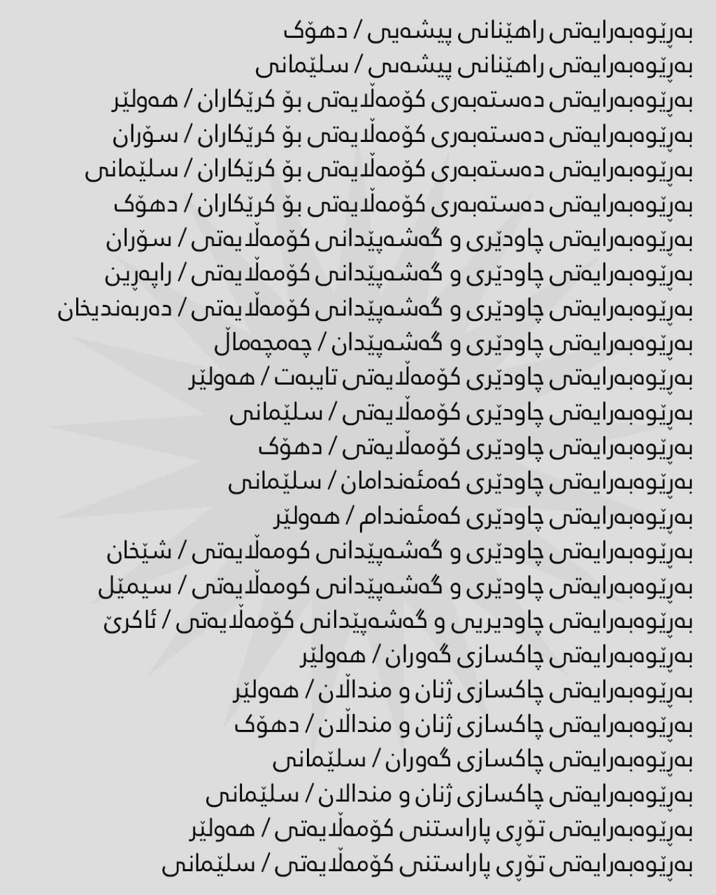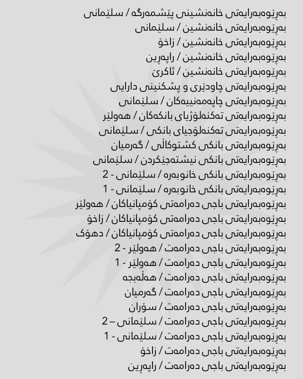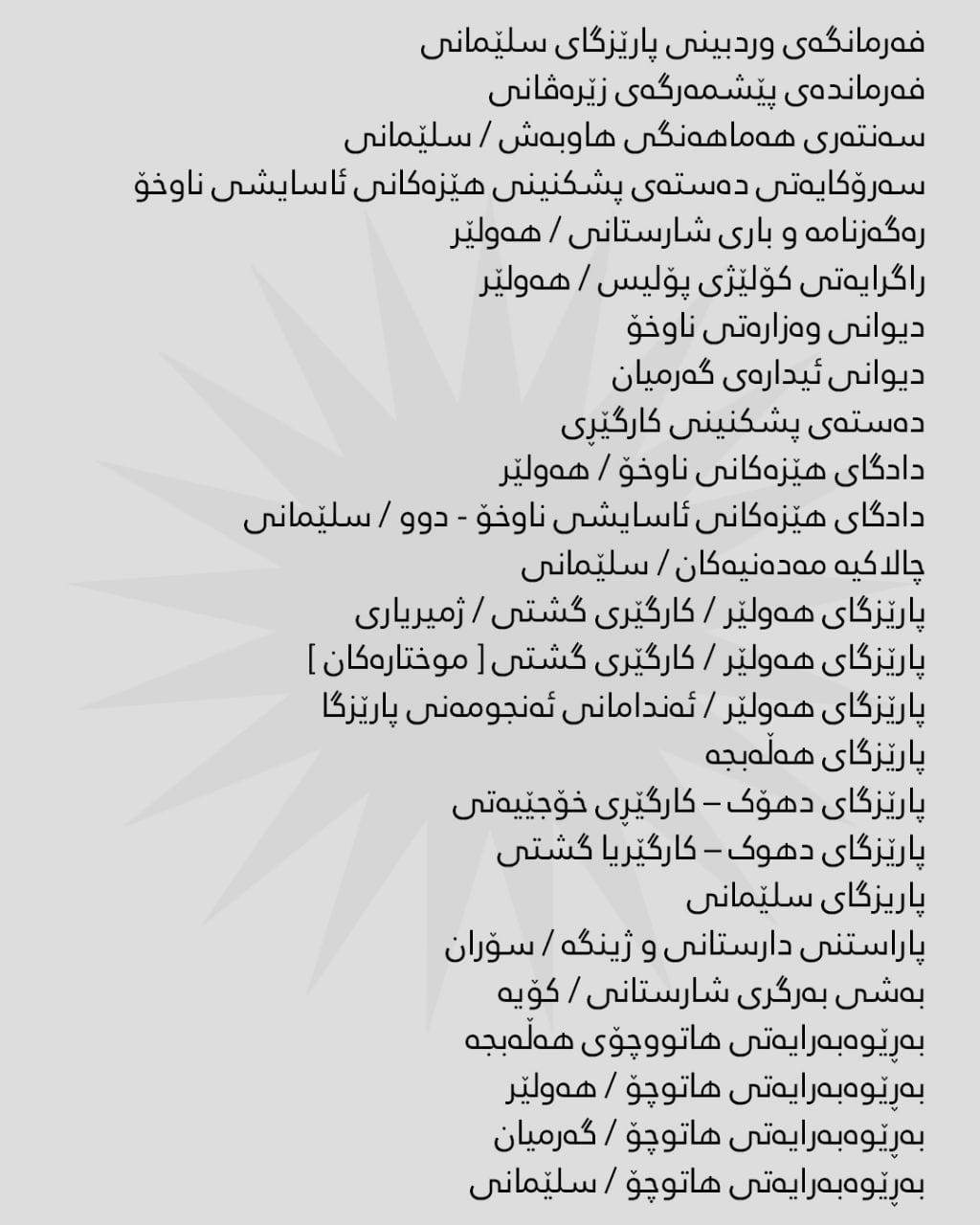 لیستی ناوی فەرمانگە و بەڕێوەبەرایەتی و دەستە و وەزارەتەكان هاوپێچی ئەم هەواڵەیە..