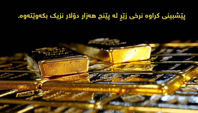 لهلایهكی ترهوه بانكی وهبهرهێنانی سویسرایی دواین پێشبینی خۆی لهبارهی ئاسۆی بازاڕی زێڕ راگهیاندووه و گوتوویهتی، نرخی ههر ئۆنسێكی دهگاته چوار ههزار و 900 دۆلار.