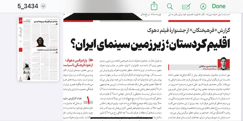 له روانگهی رۆژنامهكه زۆربهی ئهو فیلمه ئێرانییانهی له دهۆك بهشدار بوون به فیلمی ژێرزەمینی ناسراون، فیلمگهلێك كه حكوومهتی ئێران مۆڵهتی بهرههمهێنانی پێ نهداون، بهڵام به نهێنی و له دهرهوهی یاسا و رێساكانی ئێران بهرههم هاتوون. چەمکی سینەمای ژێرزەمینی لە ئێران بەو واتایە نییە فیلم لە ژێرزەمین بەرهەم بهێنرێت بەڵکوو بەو واتایەیە ئێران مۆڵەتیان پێنادات و دەرهێنەرەکانیش بە نهێنی بەرهەمی دەهێنن و لە فێستیڤالە جیهانییەکاندا بەشداری دەکەن.