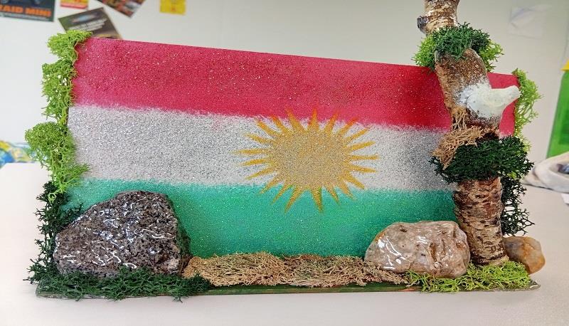 هونەرمەند و نیگاركێشی ئۆكراینی "تێتیانا فرای" تابلۆیەك كە ئاڵای كوردستانە دروست دەكات و بۆ ژنە نووسەرێكی دیاری كوردی دەنێرێت.