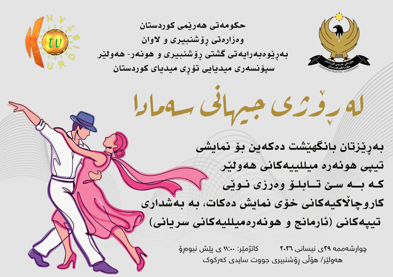 بەڕێوەبەرایەتیی گشتیی ڕۆشنبیری و هونەر- هەولێر، بەبۆنەی ڕۆژی جیهانیی ساما؛ سبەینێ 29ی نیسان، بە سێ تابلۆ وەرزی نوێی كارو چالاكییەكانی خۆی نمایش دەكات.