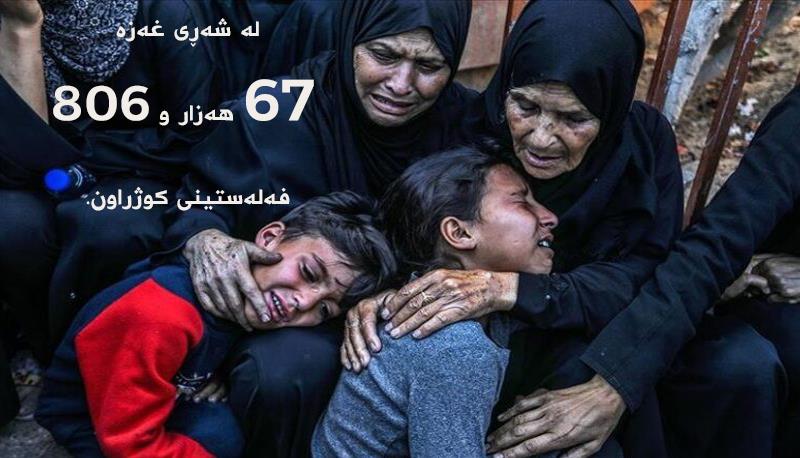 لەو ژمارەیە 67 هەزار و 806 فەلەستینی کوژراون و 170 هەزار و 66 کەسی تر بریندار بوون کە زۆربەیان خەڵکی سڤیلن.
