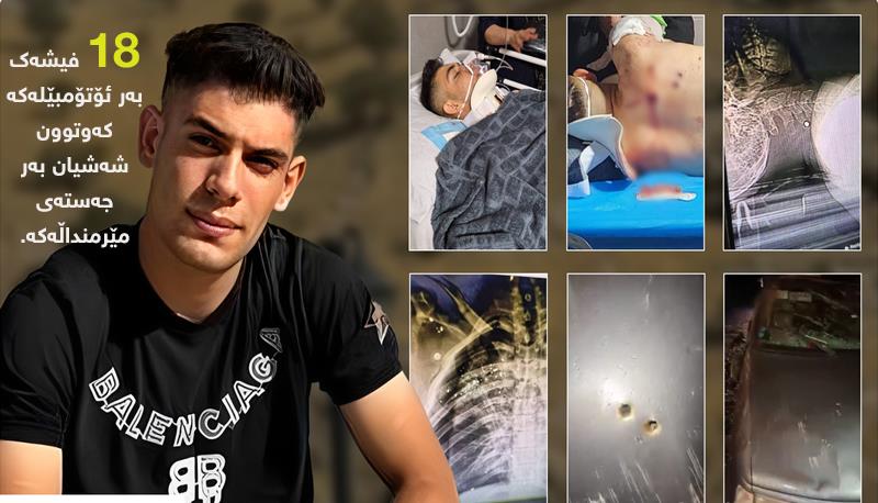بەهۆی دەستڕێژی فیشەک و تەقەی هێزەکانی ئێران، 18 فیشەک بەر ئۆتۆمبێلەکە و شەش فیشەکیش بەر جەستەی ئەم مێردمنداڵە کەوتوون.